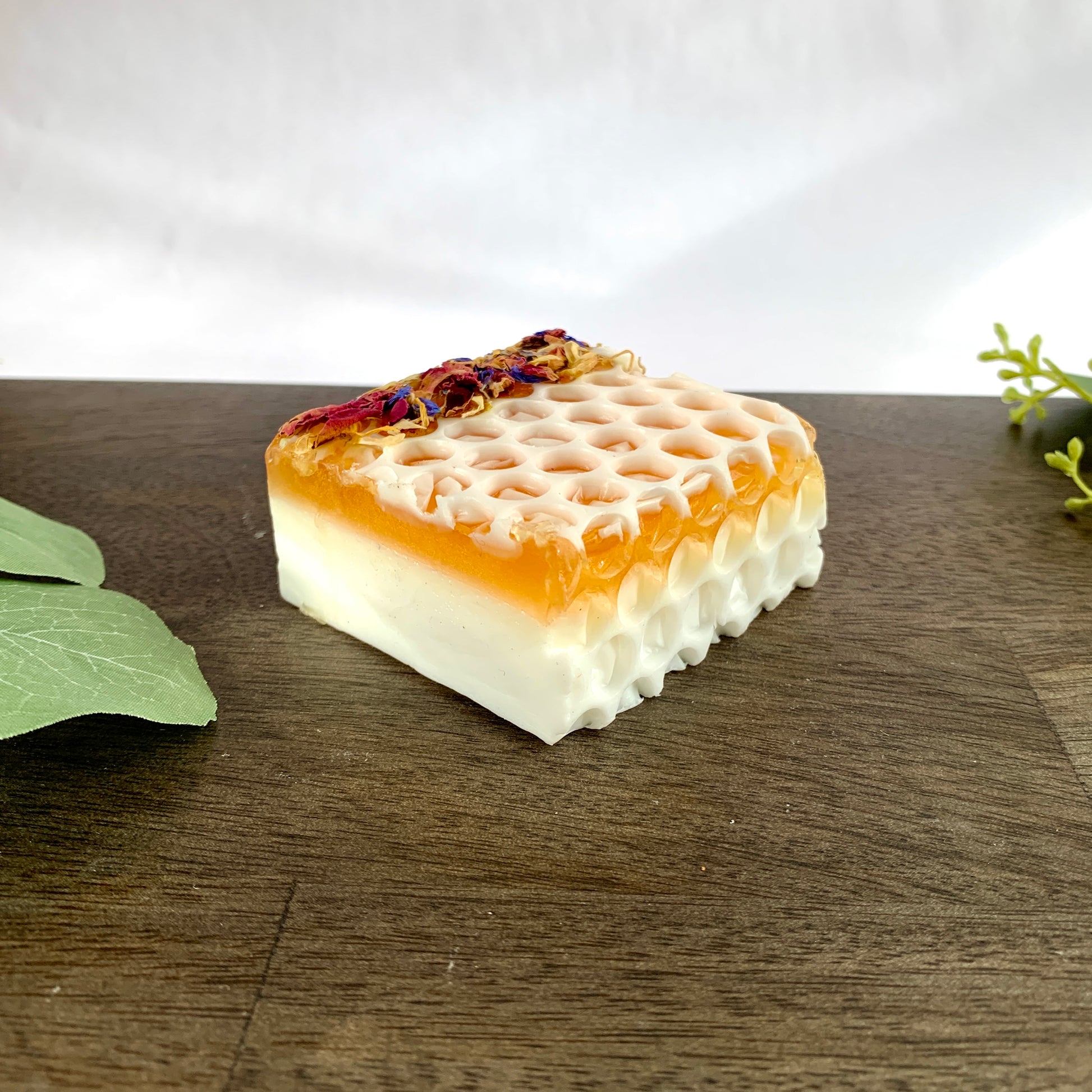 Revitalize your skin with our Honeycomb soap, made with nourishing milk and wildflower honey, and infused with the refreshing scent of wild daisies. The beautiful, dried flower petal topper adds a touch of natural charm to your daily routine. Experience the benefits of natural ingredients with our Wildflower Honeycomb Soap.